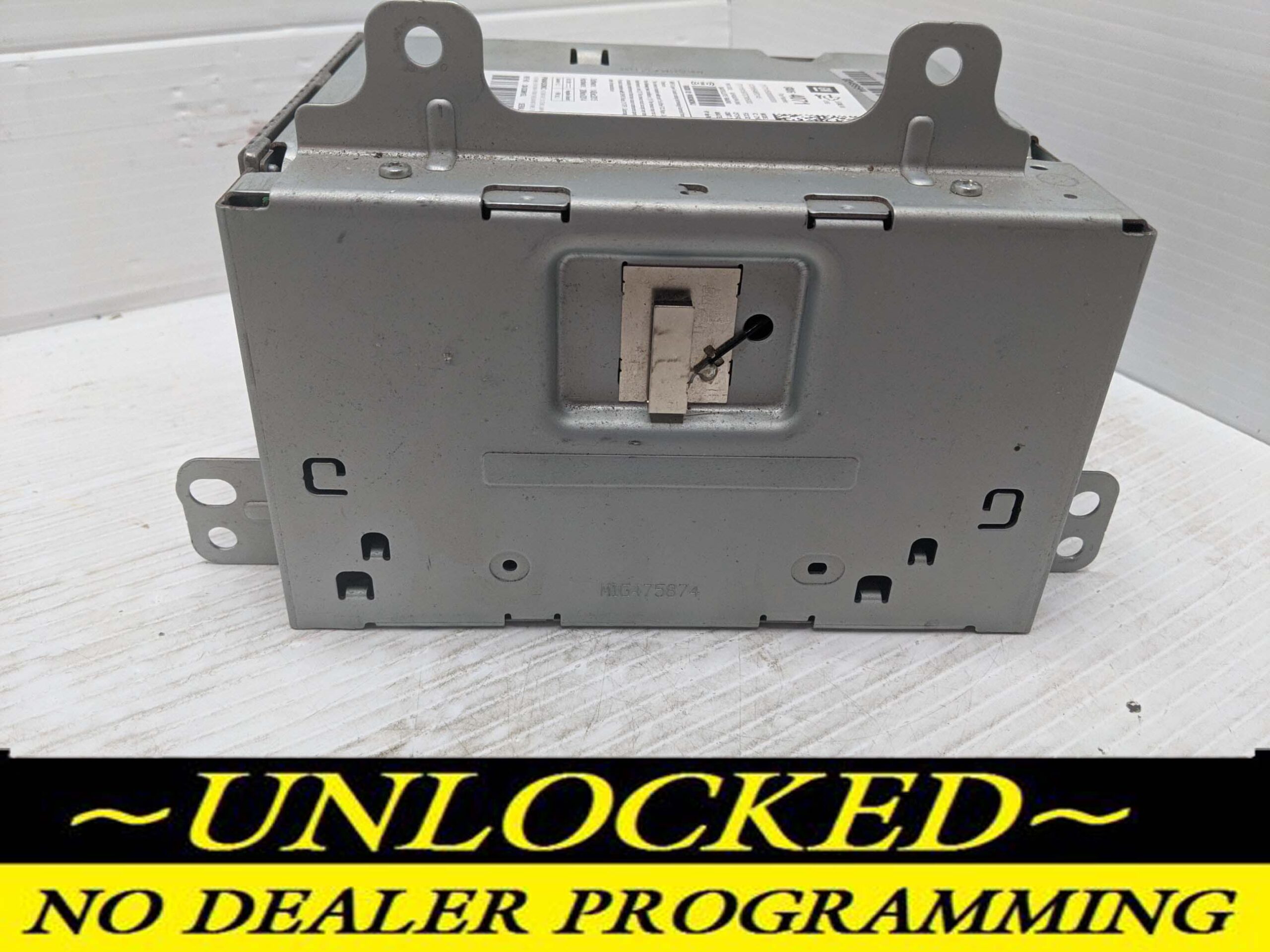 Most pre-owned stereos/modules require a factory unlock from the dealer, which can cost $200+. Save your time and money and buy this unlocked unit. This device has all it done, its plug and play. Once you plug it in your car, your VIN number will be automatically registered to your car. No dealer programing required!!
