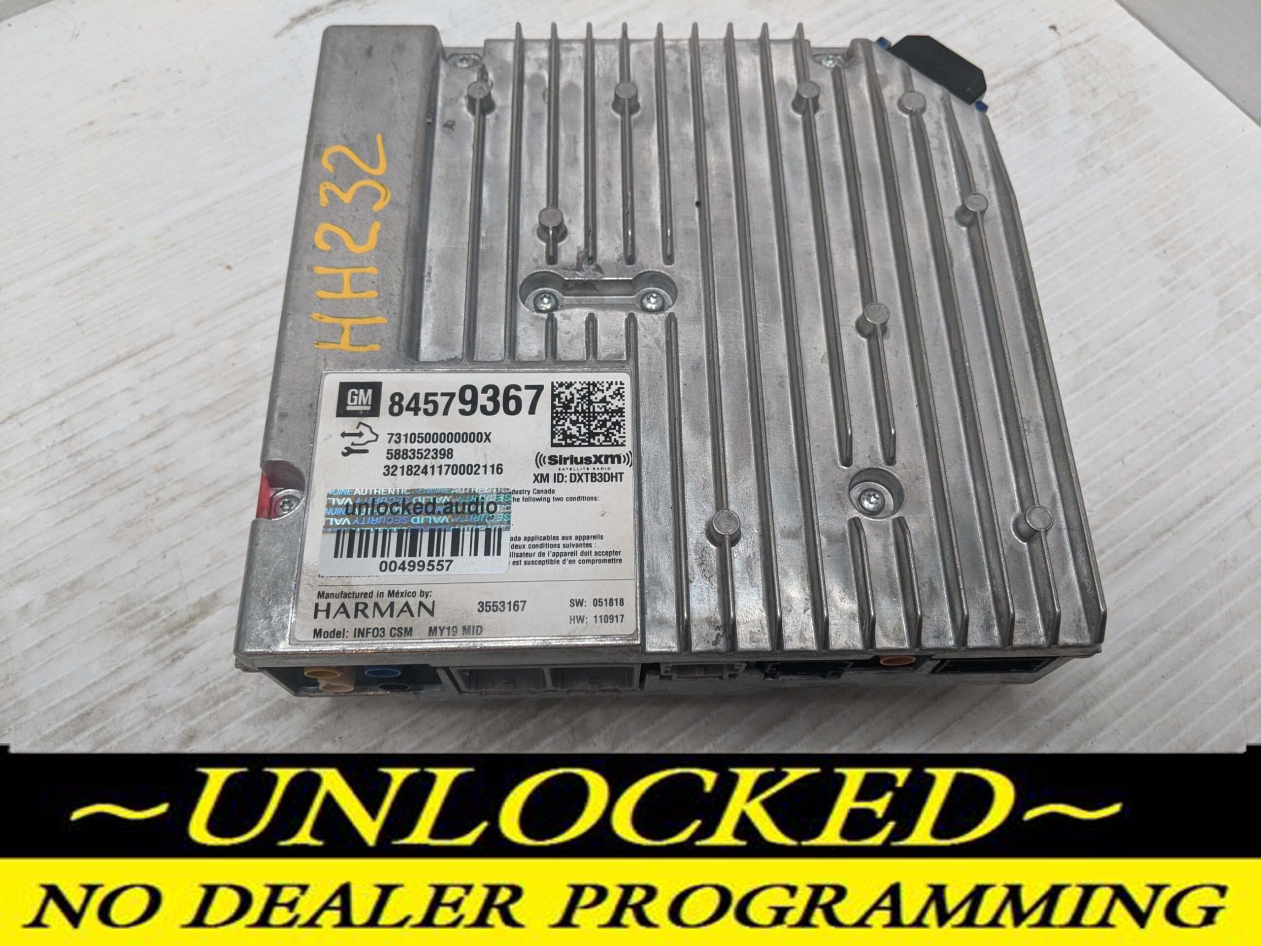 Most pre-owned stereos/modules require a factory unlock from the dealer, which can cost $200+. Save your time and money and buy this unlocked unit. This device has all it done, its plug and play. Once you plug it in your car, your VIN number will be automatically registered to your car. No dealer programing required!!